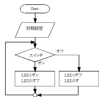 「スイッチがONならばLED1を点灯、OFFならばLED2を点灯」
