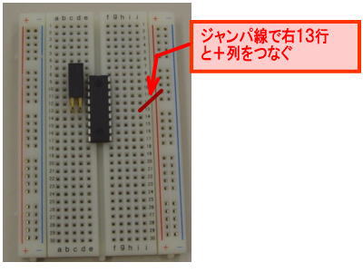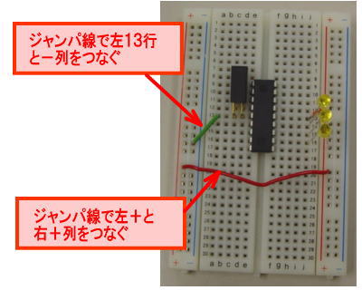 Fig.7 PICマイコンのVccを−列につなぎ、左右の+列をつなぐ