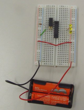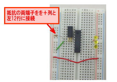 2)PICマイコンのVdd端子を+列に接続
