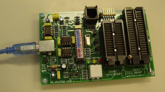 PICライターとパソコンをUSBケーブルで接続します。(※MPLABがインストールされているパソコンであれば、デバイス・ドライバが既に導入されています。)