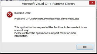 Q5. 「閉じる」ボタンを押した時にMicrosoft Visual C++ Runtime Library のエラーが出現する。