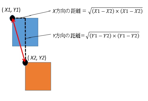 dx=(x1(cnt)-x2(ntm))*(x1(cnt)-x2(ntm)) // 虫と弾のx方向の距離の2乗。cntは虫を区別するためのインデックス
