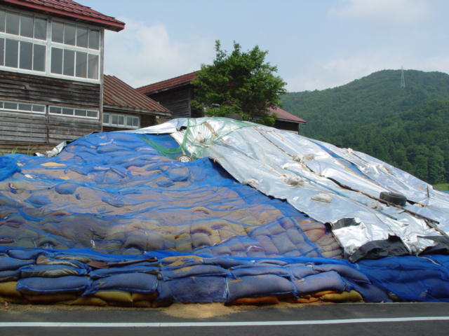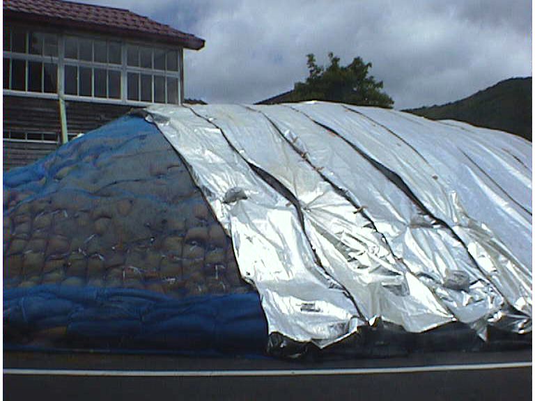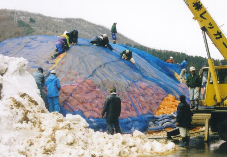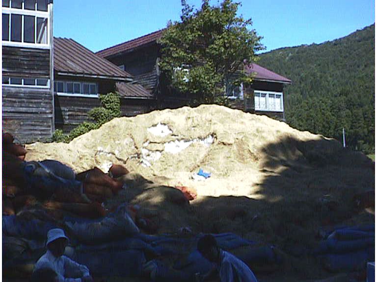 Fig.5 もみ殻掛け作業2 <撮影:H14/3/24>