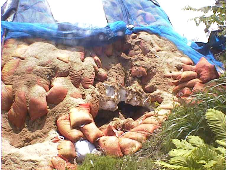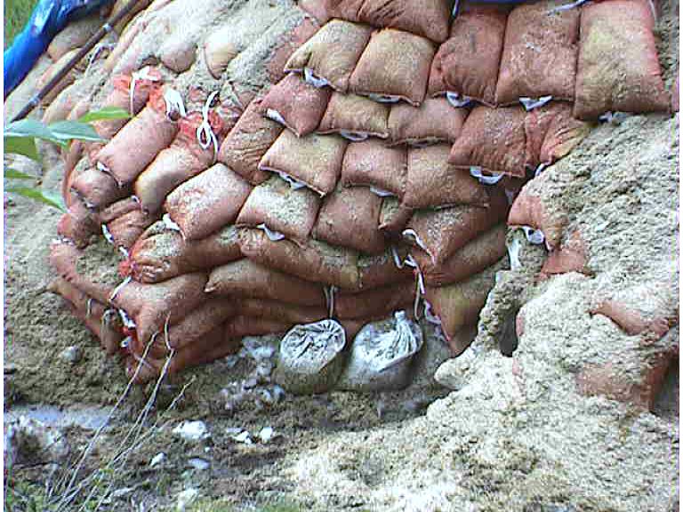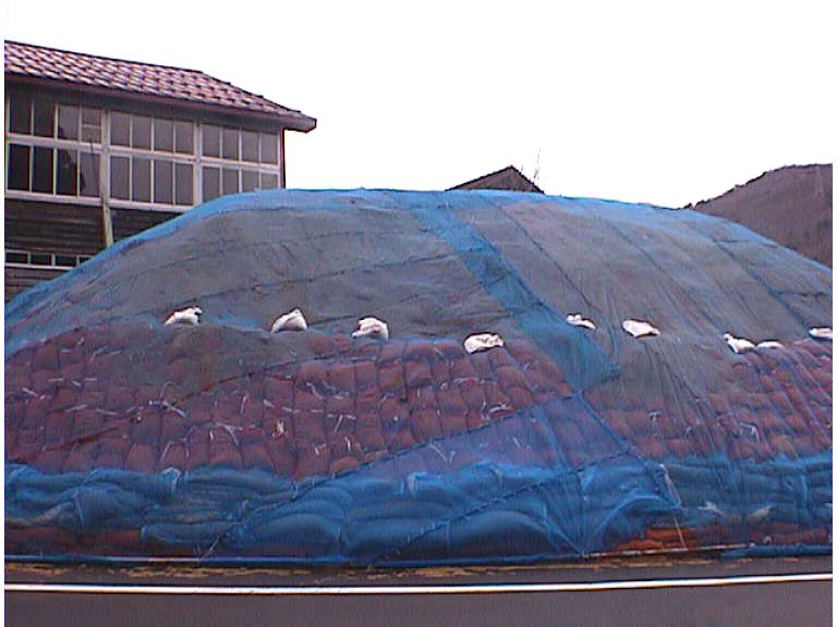 悪)積崩れて隙間が生じる。考案したネットは破れやすい。