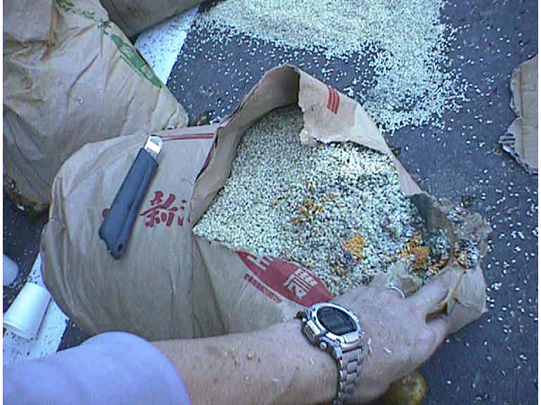 ・米−紙袋入りはカビが生じ,腐食臭がする。ビニール入りの米には影響が無かった。