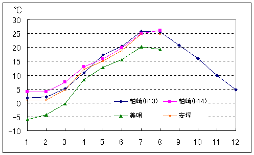 Fig.16 月単位平均気温(気象庁観測データを引用)