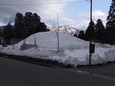 鵜川は現在2mを超える積雪があります。旧鵜川小学校のプールには、高さ6m程の山が出来ています。