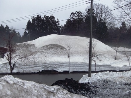 鵜川周辺の積雪は、275cm。プール敷地には、小高い山が既に出来ていました。