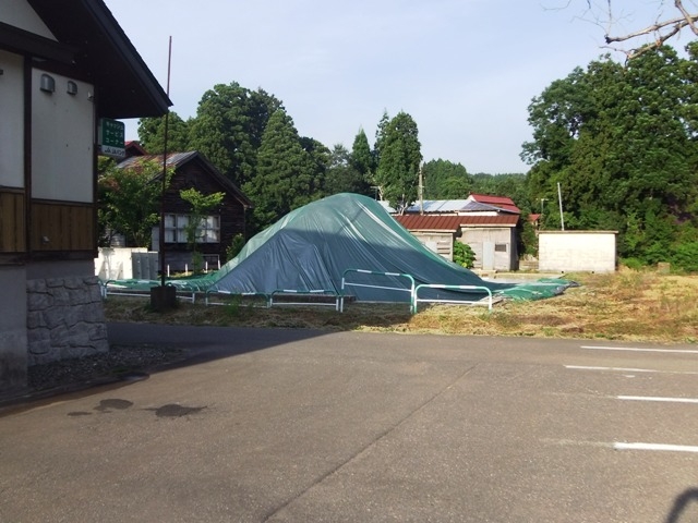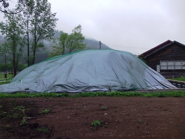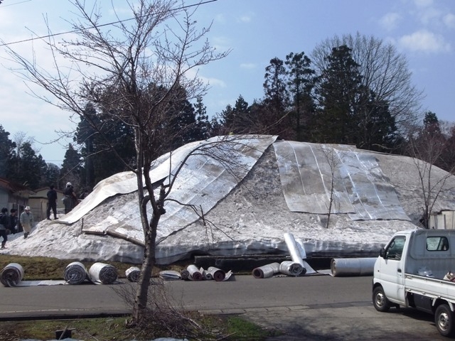 雪山の成形と被覆材(シートとアルミ輻射断熱材)の補修を行いました。