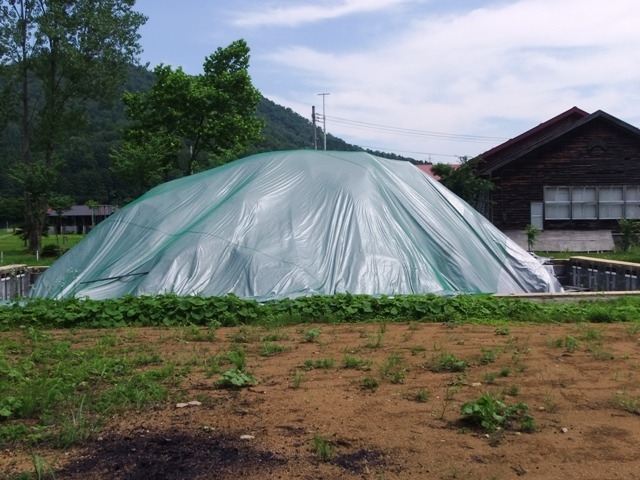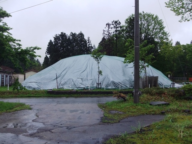 また、後の被覆作業のために、重しとして利用するブロックやパイプ、断熱材を移動しました。