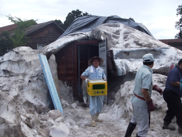 21日からの貯蔵品搬入作業を前に雪室周辺の除雪を行いました。