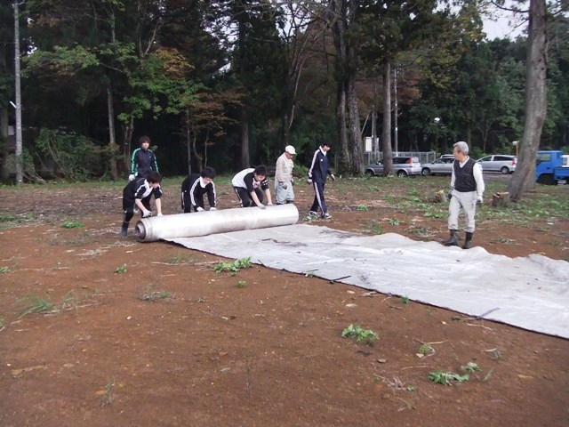 被覆材を撤去するなど、後片付けを行いました。当日は学生13名を含め、21名で作業を行いました。