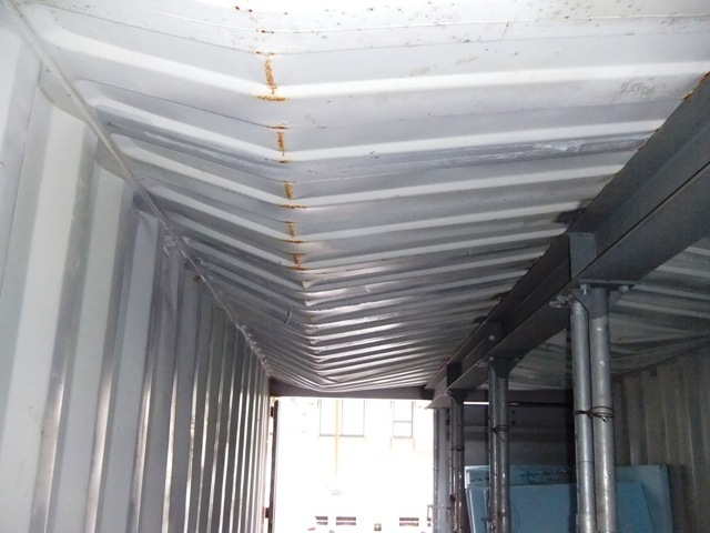 貯蔵庫(コンテナ)の扉を開けてみると、天井が雪の重みで曲がっていた